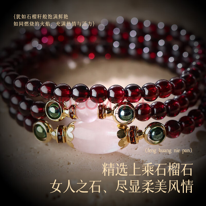 商品相册:凤凰涅磐石榴石手链女款多圈水晶手串转运珠古风首饰生日礼物送女朋友老婆第