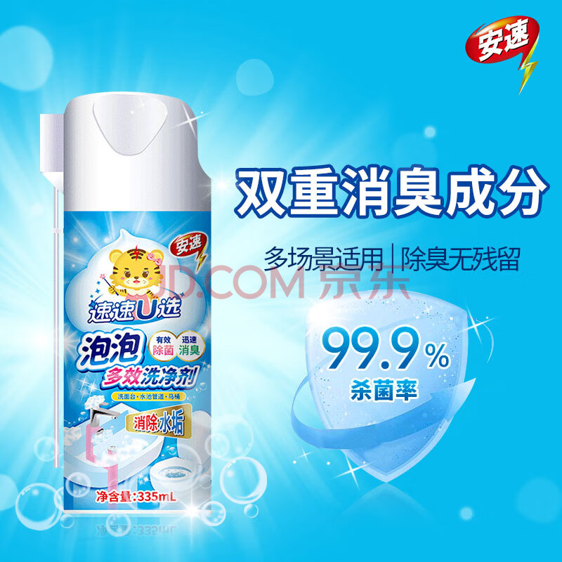 商品相册:安速泡泡洁厕灵335ml马桶除味除垢洁厕液洗面台清洁多效清洁剂第