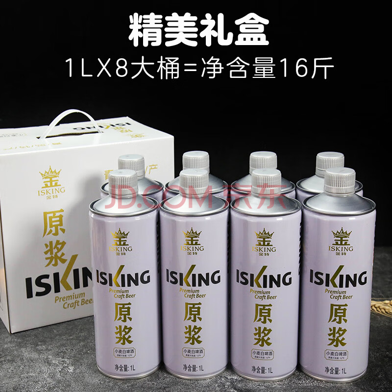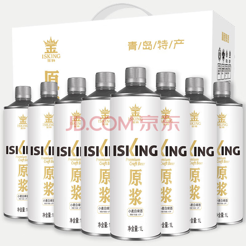 商品相册:金特(ISKING)精酿原浆白啤酒1L*8桶整箱礼盒装德式小麦白啤青岛特产踏春送礼第