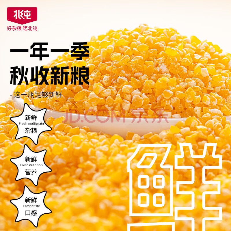 商品相册:北纯 有机玉米碴3斤/罐(富含膳食纤维小细颗粒苞米碴大碴粥杂粮米)第