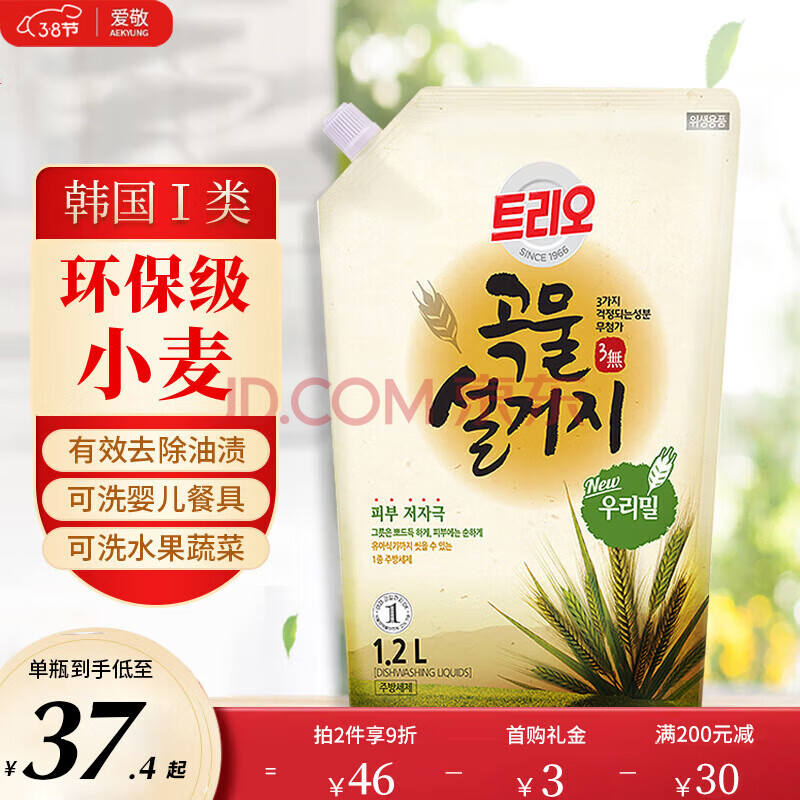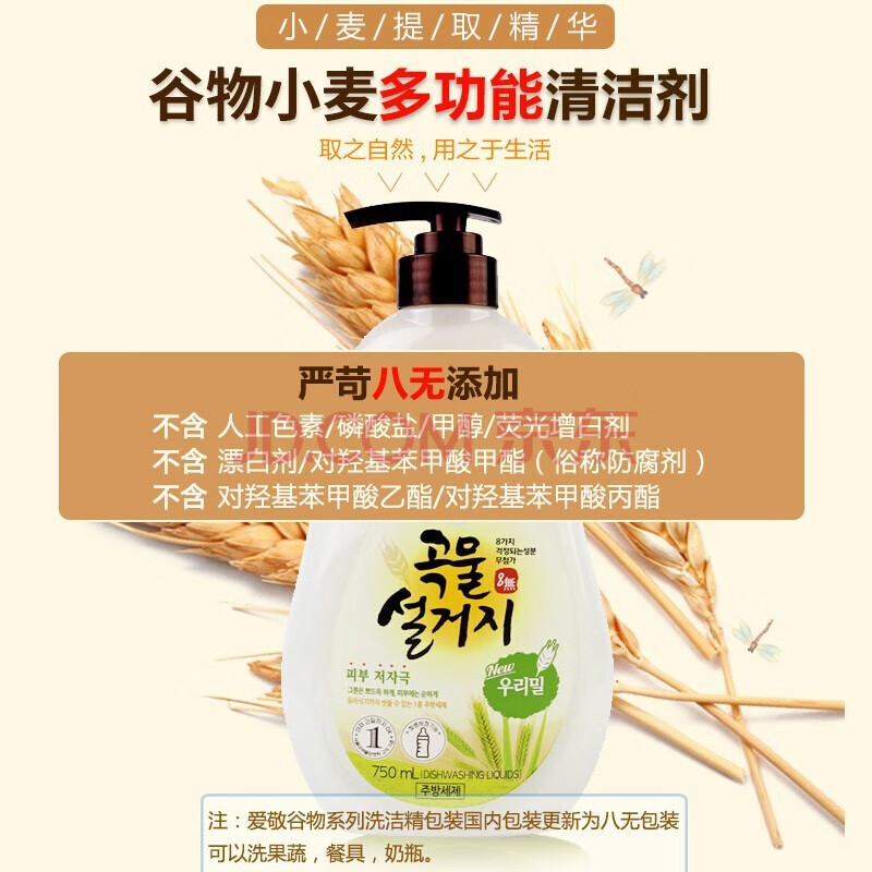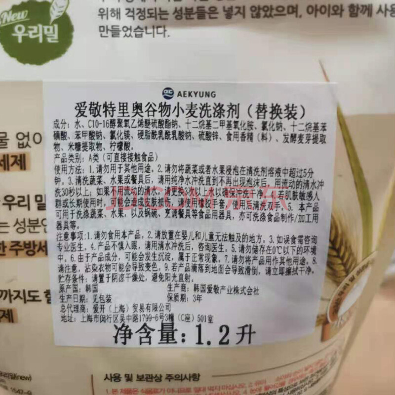 商品相册:2080爱敬洗洁精谷物小麦洗涤剂1200ml食用级浓缩洗碗液餐具去油进口第