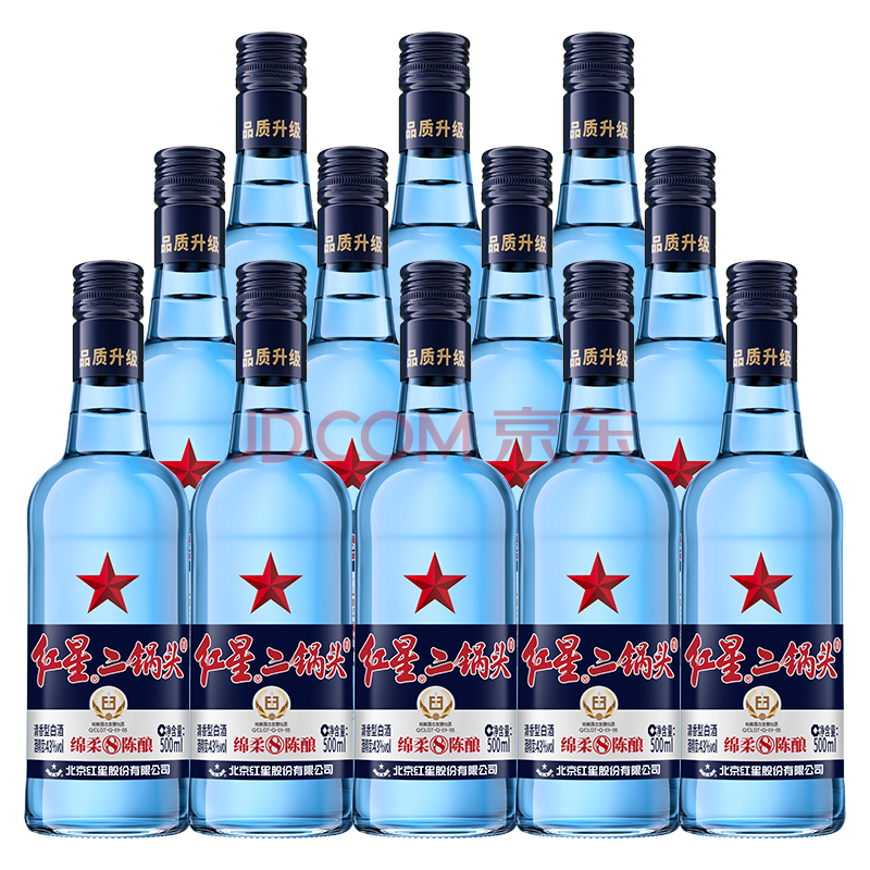 商品相册:红星二锅头 蓝瓶绵柔8陈酿 清香型白酒 43度 500ml*12瓶 整箱装口粮酒第