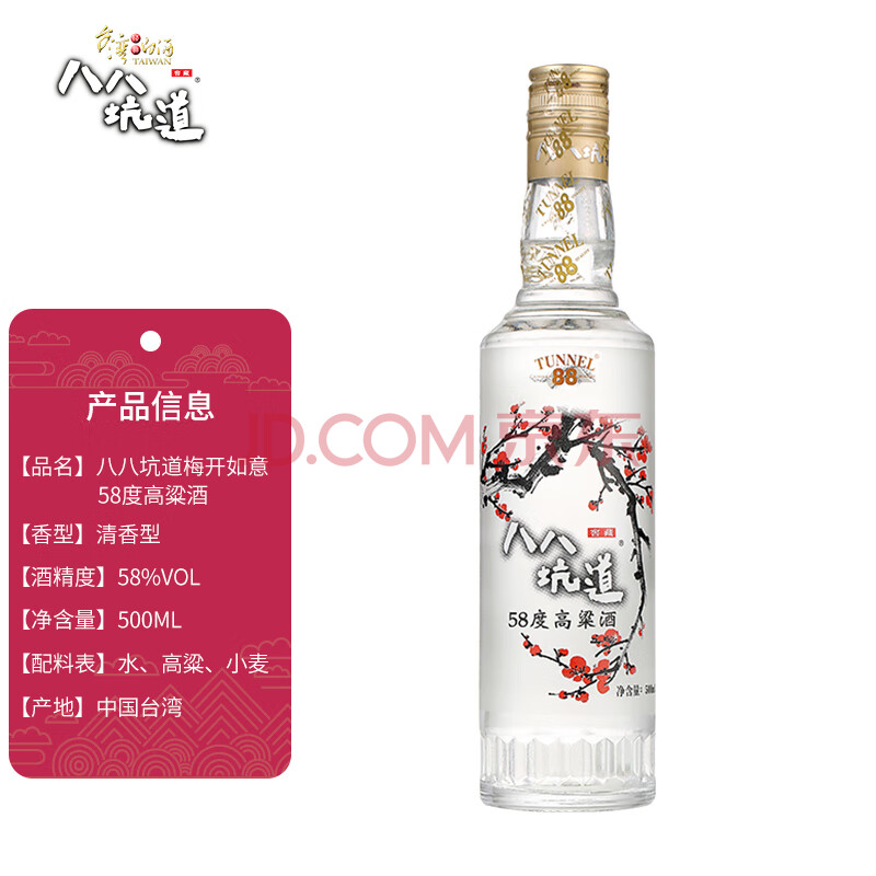 商品相册:八八坑道梅开如意 清香型白酒 58度 500ml 单瓶 台湾高粱酒 收藏送礼第