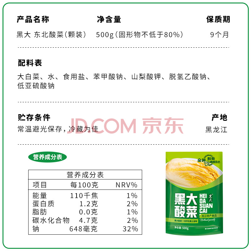 商品相册:黑大 东北酸菜颗装500g 东北酸菜 酸白菜 颗装酸菜芯 500g第1张/共8