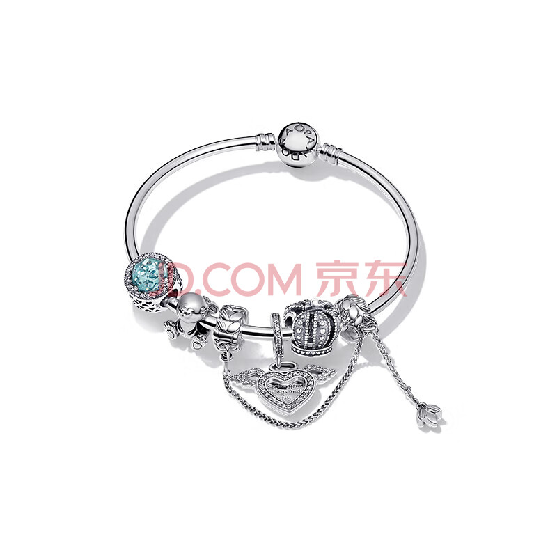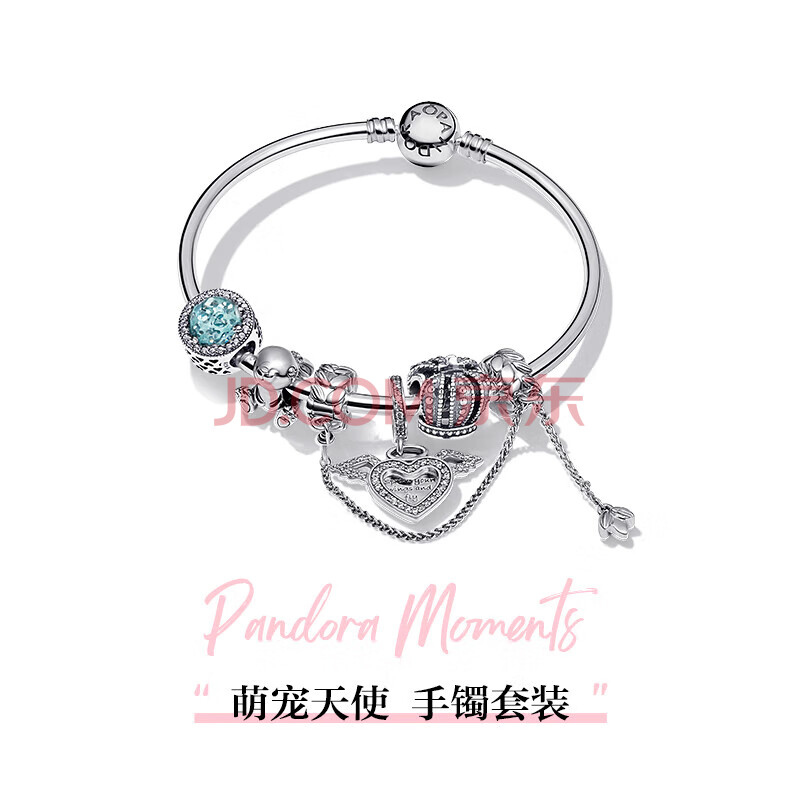 商品相册:潘多拉(PANDORA)萌宠天使手镯套装银白色浅蓝可爱生日礼物送女友第