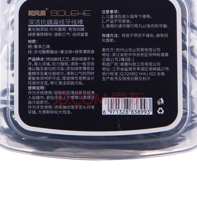 商品相册:和风雨扁线牙线棒 双香型深洁抗龋强韧不易断便携护龈牙签线100支*3盒第