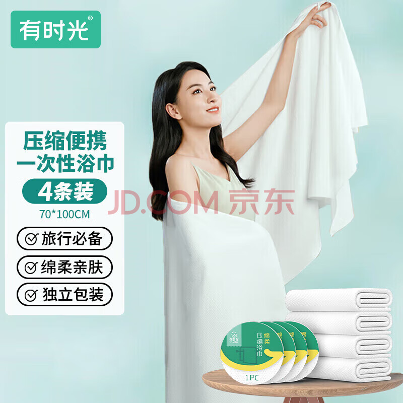 商品相册:有时光一次性浴巾毛巾成人旅行必备用品婴儿加厚加大压缩浴巾 4条第