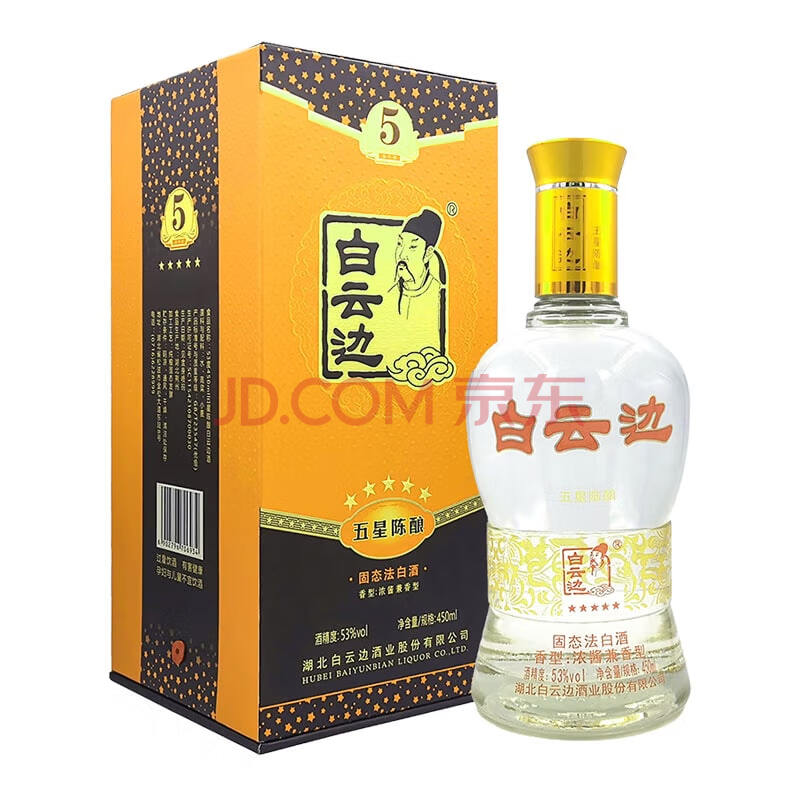 商品相册:白云边五星陈酿 浓酱兼香型白酒 53度 450ml 单瓶装 热门白酒第
