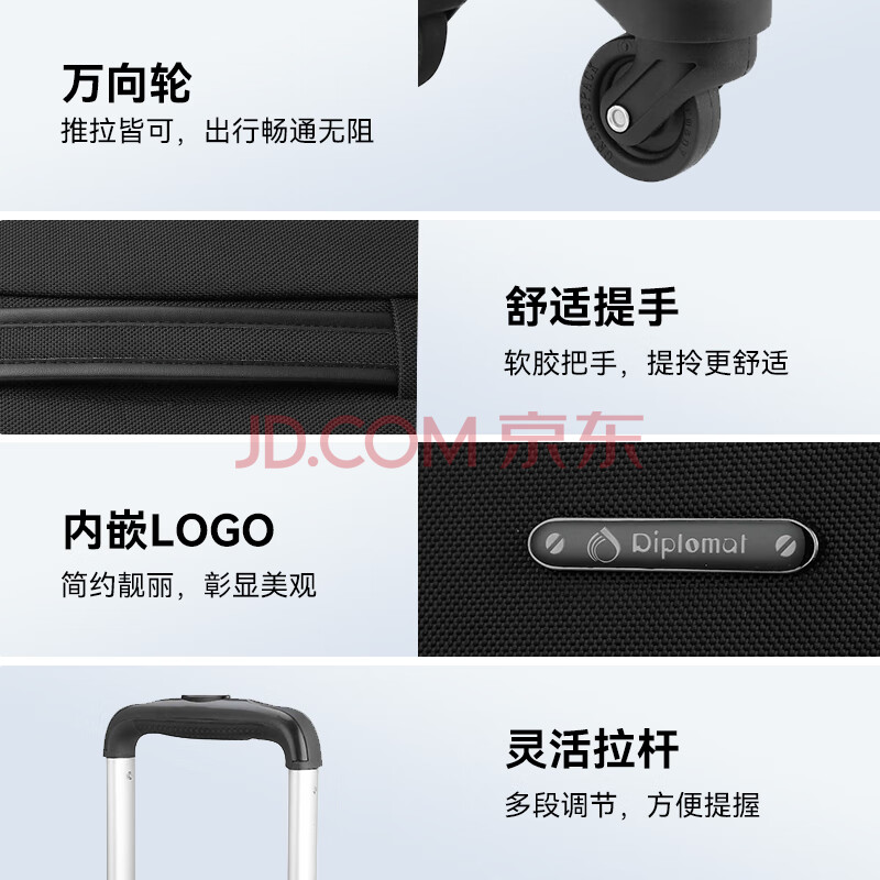 商品相册:Diplomat外交官DEF-1551G 行李箱商务万向轮商务航空登机旅行箱黑色16英寸第
