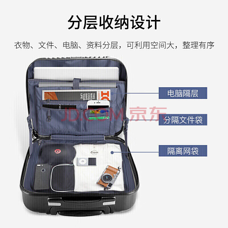商品相册:莎米特行李箱18英寸 小型静音万向轮防刮高档商务登机拉杆箱PC338黑色第