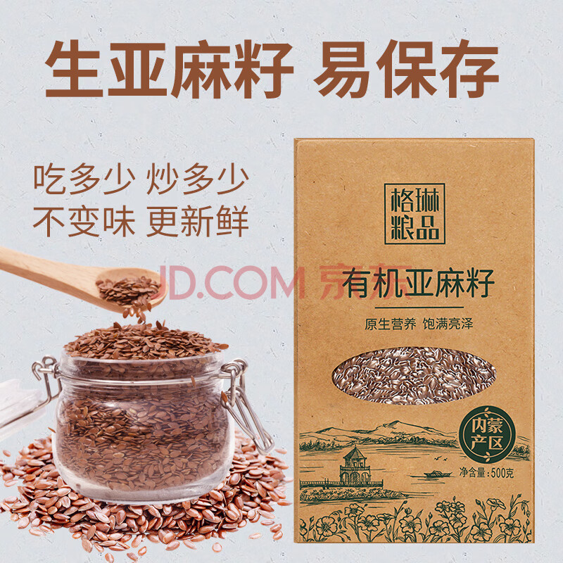 商品相册:格琳诺尔有机亚麻籽1斤 内蒙古胡麻籽 杂粮 烘焙 补充omega-3 磨粉打豆浆第