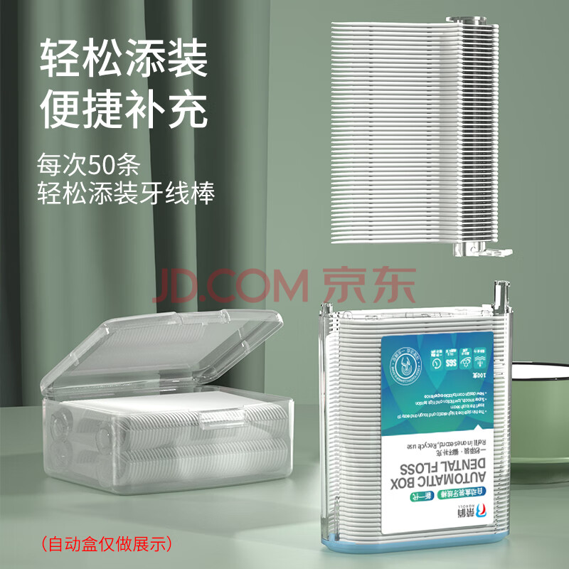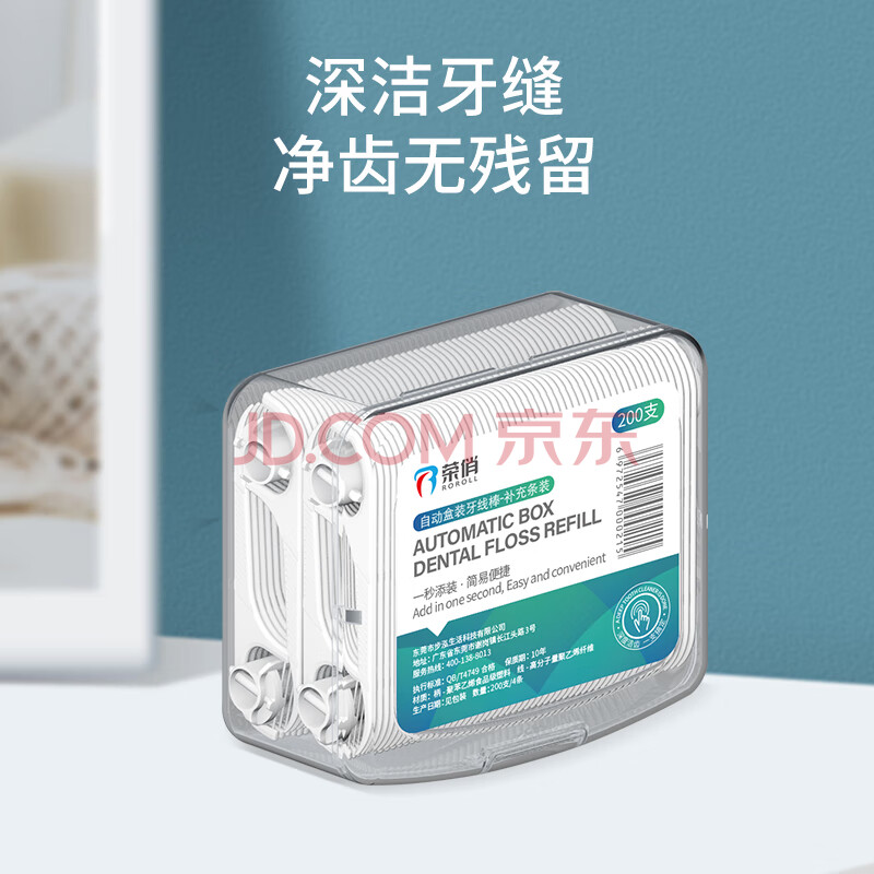 商品相册:荣俏智享版自动盒装牙线棒专用补充盒超细牙线家庭装1盒200支第