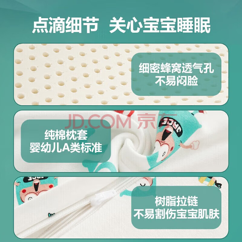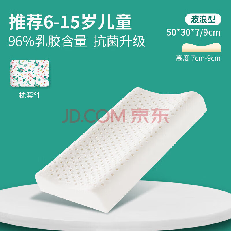 商品相册:JaCe儿童学生乳胶枕泰国原装进口96%天然乳胶 A类枕头枕芯6-15岁白第