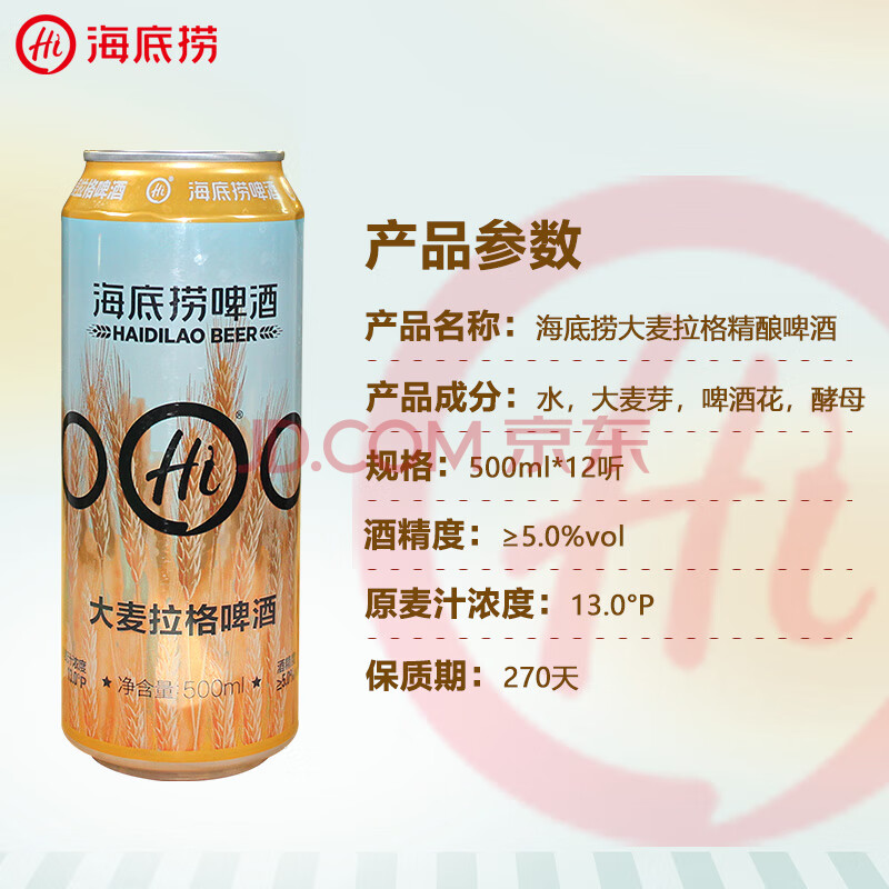商品相册:海底捞啤酒13度德式大麦精酿黄啤500ml*12听整箱装门店同款 聚餐送礼第