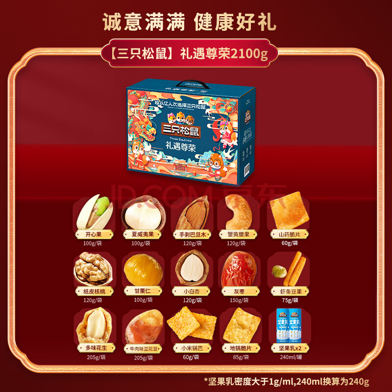 商品相册:三只松鼠 礼遇尊荣 2100g 开心果草本核桃小白杏核坚果休闲零食第