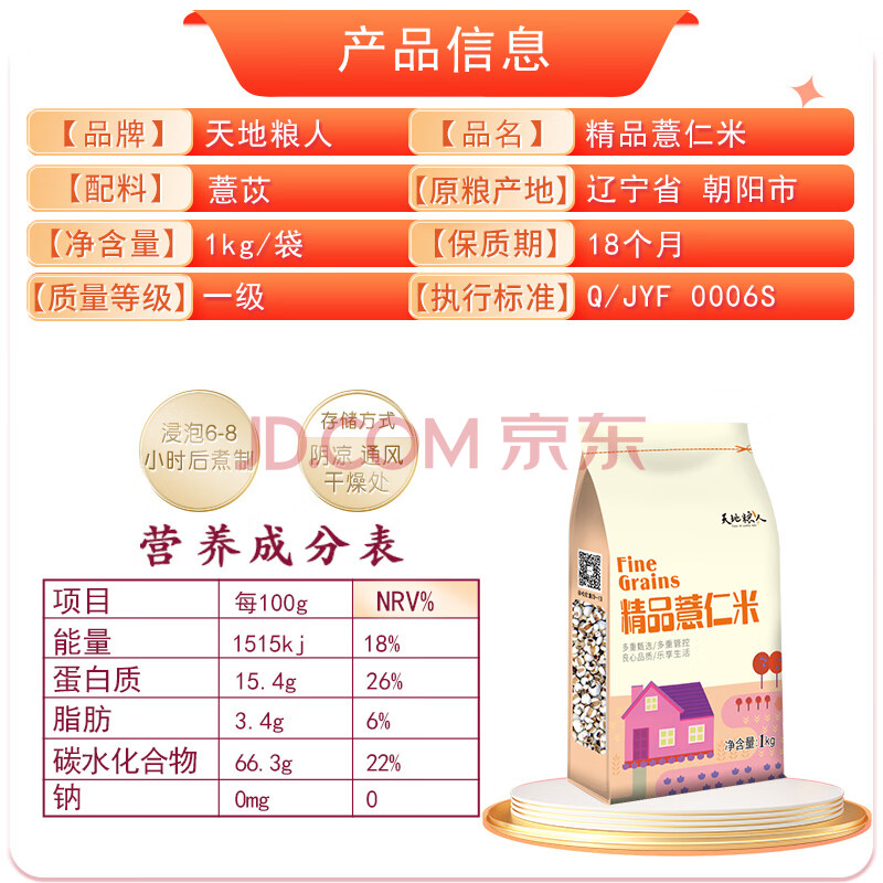 商品相册:天地粮人甄制天地粮人 精品 薏仁米2斤(小粒薏米 薏仁 粗粮杂粮)第