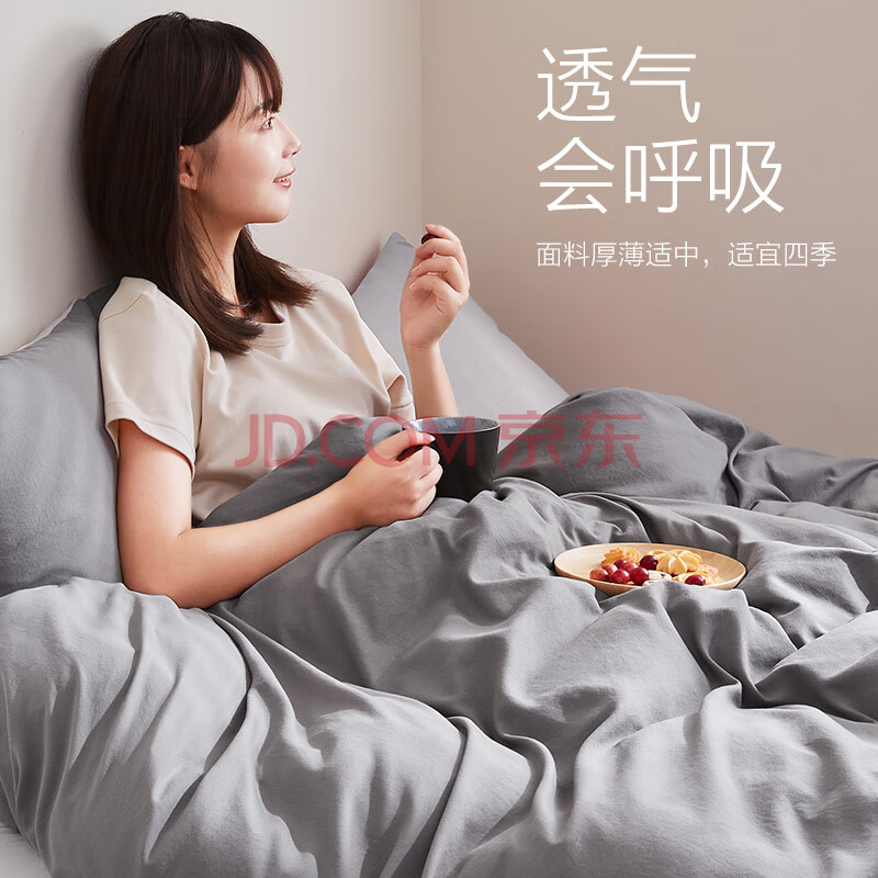 商品相册:网易严选日式裸眠亲肤磨毛宿舍四件套酷灰色床单被套1.5m床/2mx2.3m被芯 第