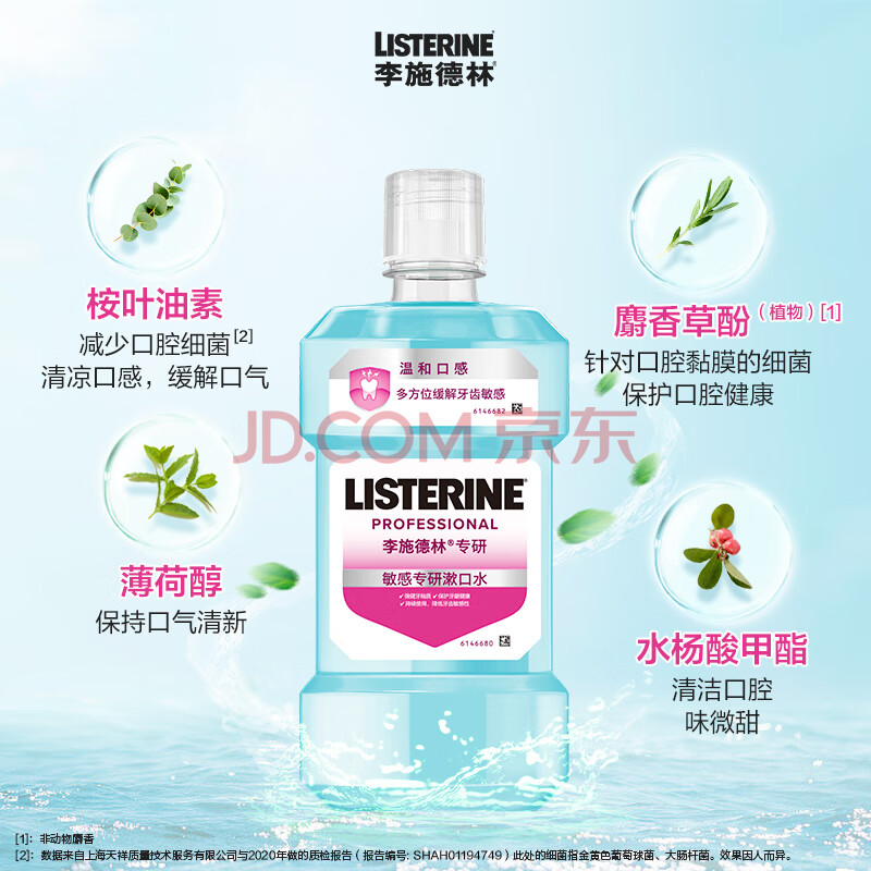 商品相册:李施德林(Listerine)漱口水 抗牙敏感500ml 温和清新口气深层清洁减少细菌第