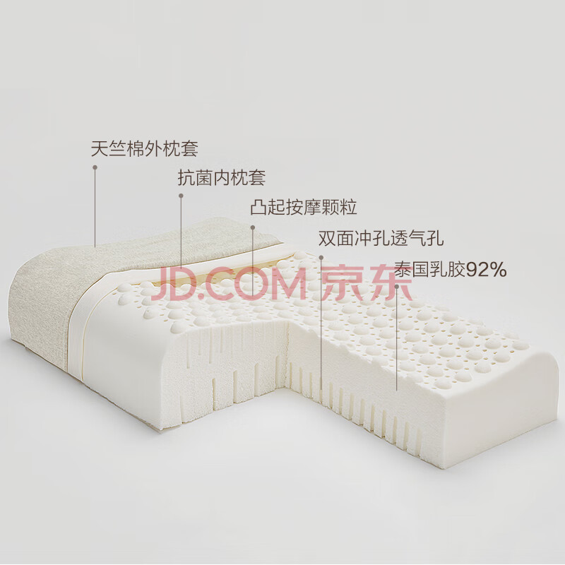 商品相册:8H 泰国92%天然乳胶枕头成人护颈椎助睡眠专用 Z3混米+纯棉枕套第