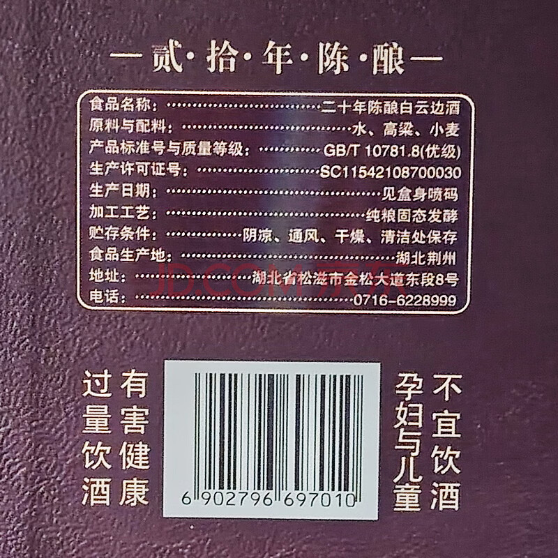 商品相册:白云边 二十年陈酿 浓酱兼香型白酒 42度 500ml 单瓶装第