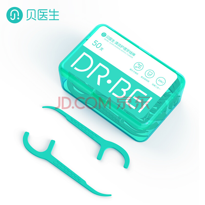 商品相册:贝医生DR.BEI 舒适洁齿高弹力牙线棒50支/盒清洁齿缝圆线护理超细牙签第1张/共5