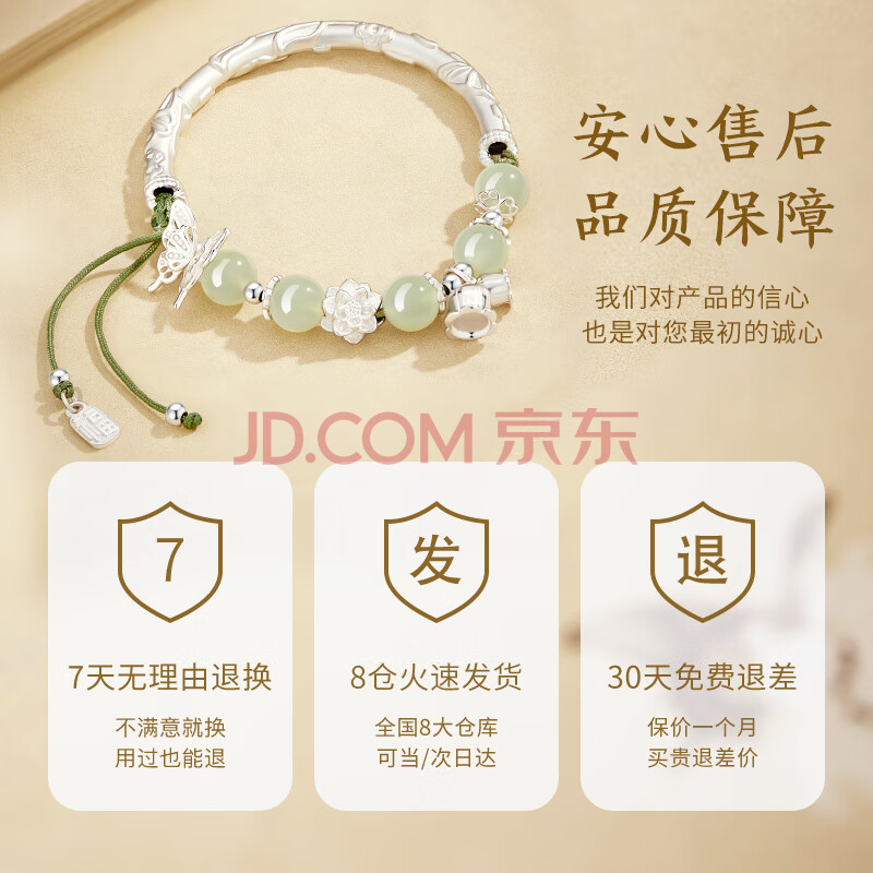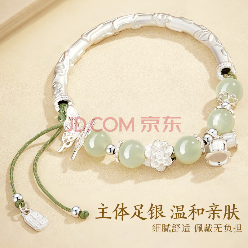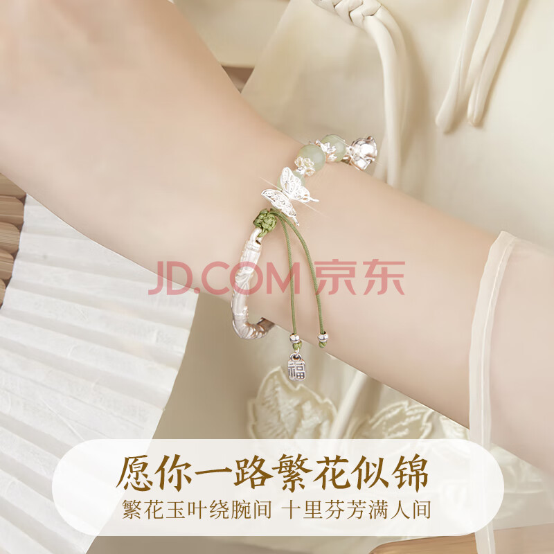 商品相册:珍尚银中国黄金繁花足银手镯实心手链女生日情人节礼物新年送女友老婆第