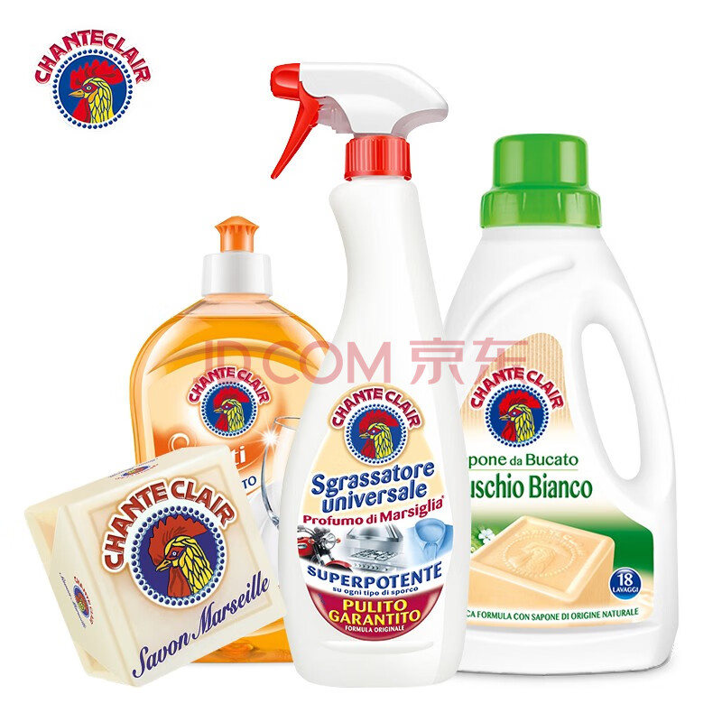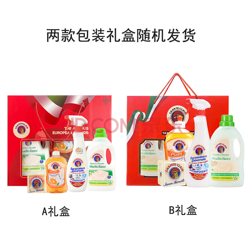 商品相册:大公鸡管家 衣物清洁洗护用品多功能清洁剂洗衣液家庭清洁 红色礼盒装 4件套第