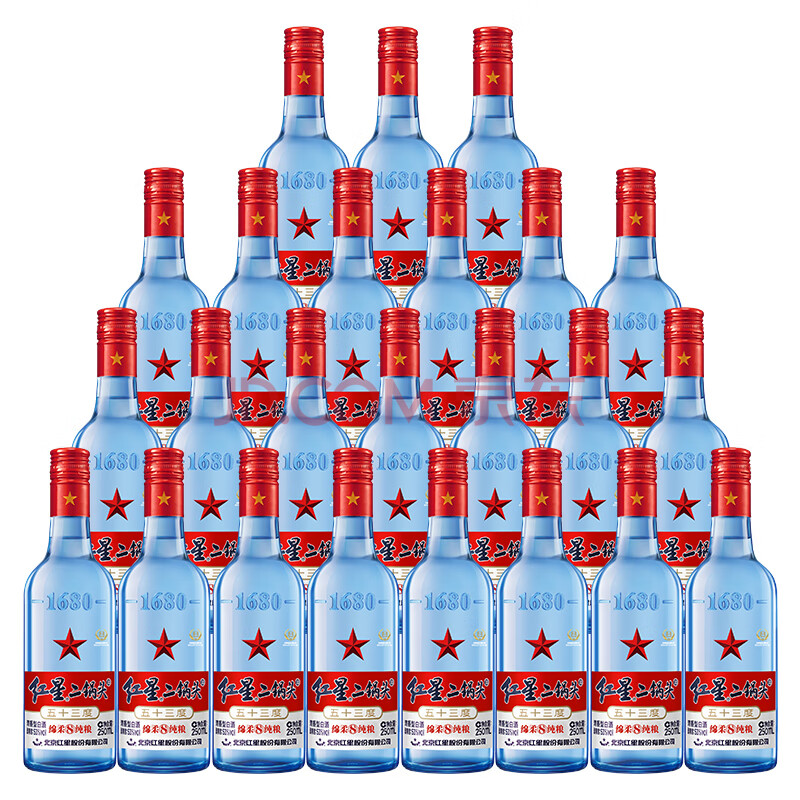 商品相册:红星二锅头 蓝瓶绵柔8陈酿 清香型白酒 53度 250ml*24瓶 整箱装口粮酒第