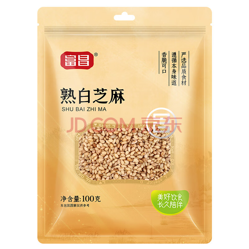 商品相册:富昌 熟白芝麻100g 炒熟芝麻粒低温炒制五谷杂粮无杂香醇饱满干吃免洗第