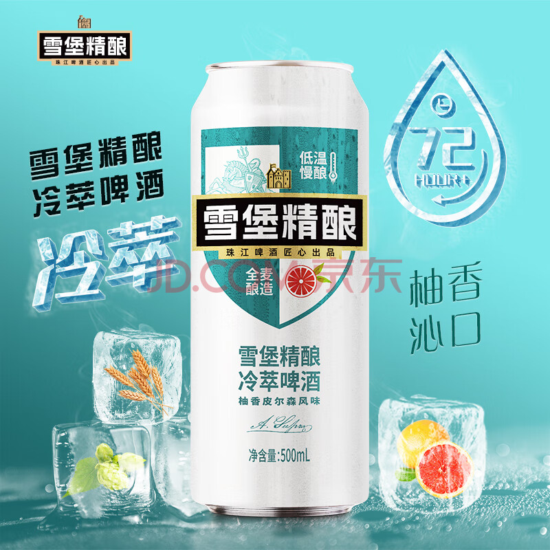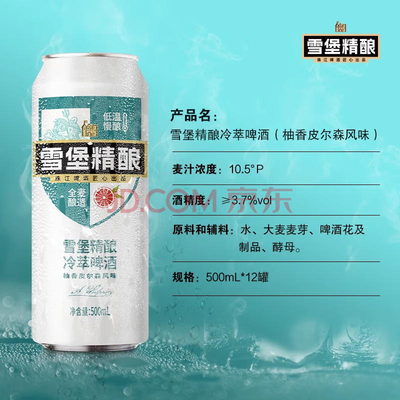 商品相册:珠江啤酒10.5度 雪堡冷萃精酿啤酒 500ml*12听 整箱装 京东自营第