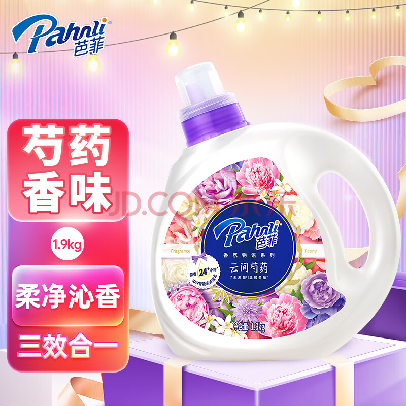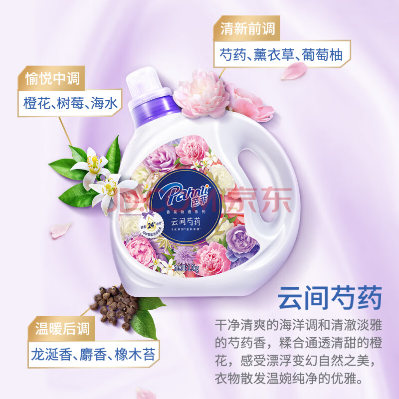 商品相册:芭菲芍药香氛洗衣液3.8斤 香味持久留香亮白增艳 儿童衣物深层洁净第