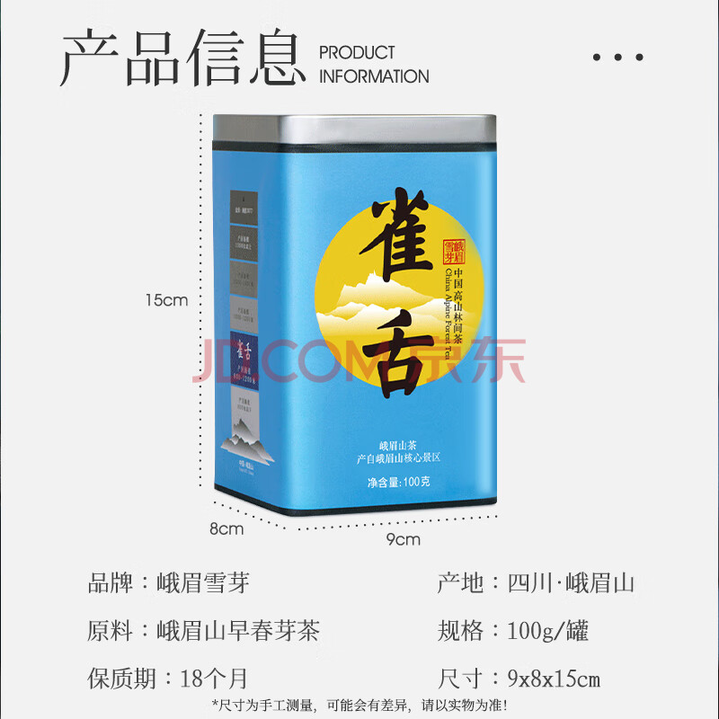 商品相册:峨眉雪芽雀舌绿茶 茶叶四川峨眉山茶高山春茶茗茶自饮100g第