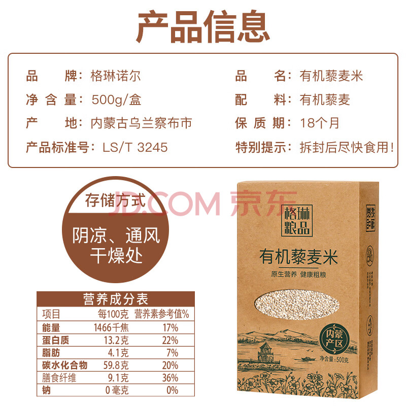 商品相册:格琳诺尔 有机藜麦米1斤 内蒙古五谷杂粮真空装(大米伴侣 粥米搭档)第
