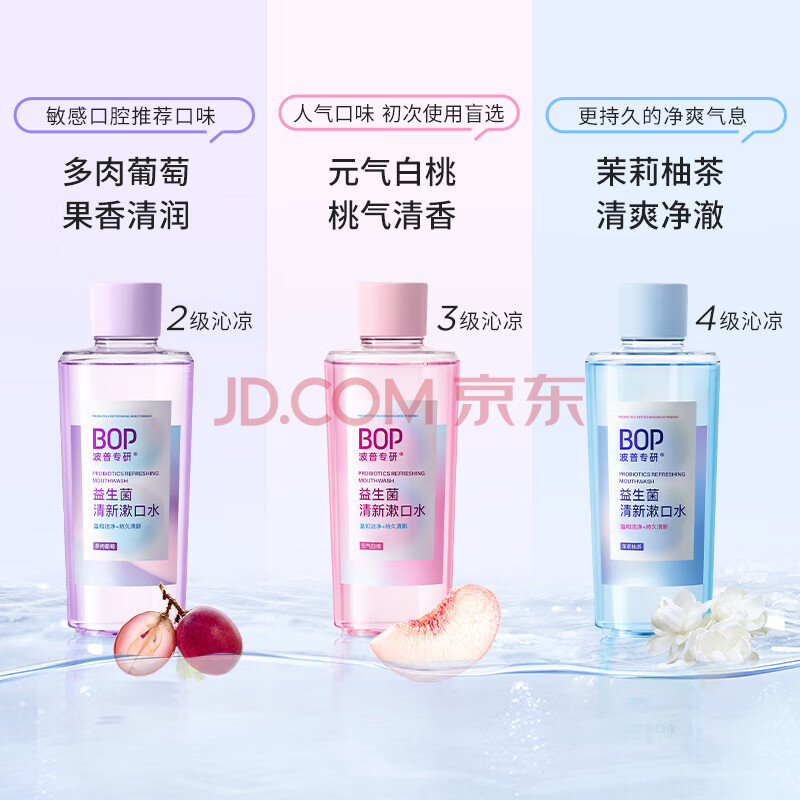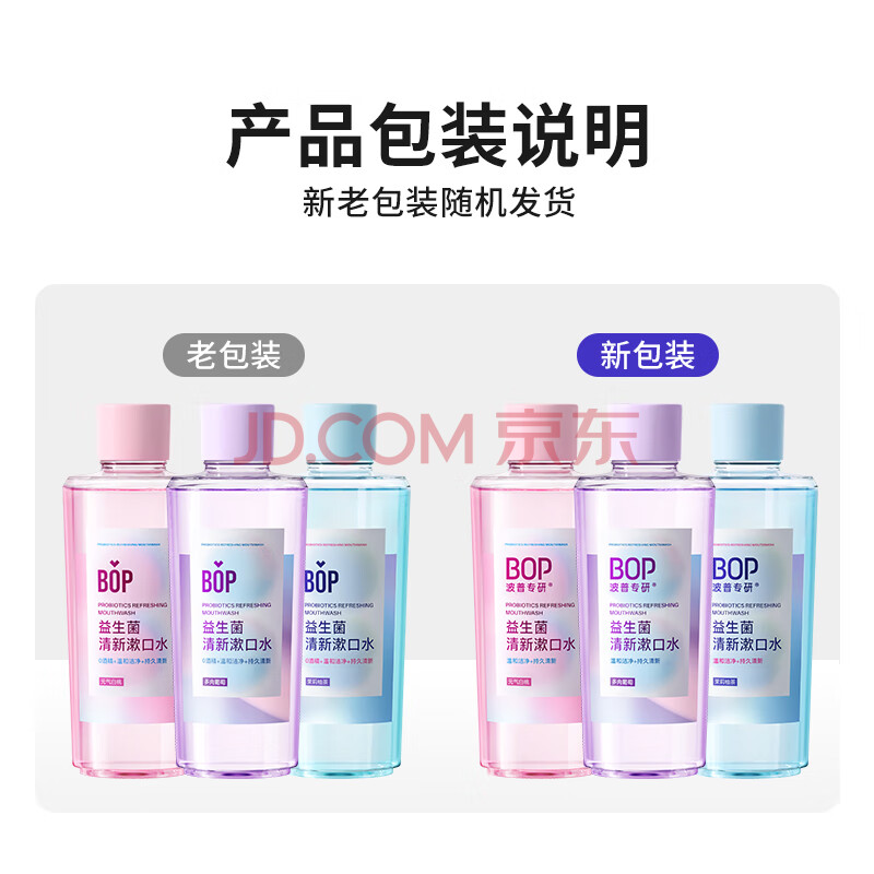 商品相册:波普专研(bop)【99%减少口腔细菌】益生菌漱口水口腔清洁护理持久3口味500ml*3第