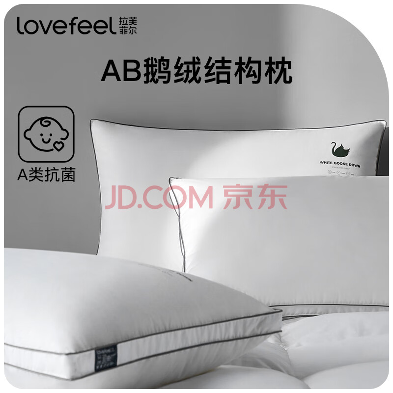 商品相册:拉芙菲尔羽绒枕头进口95白鹅绒枕酒店全棉枕芯单人抗菌颈椎枕第