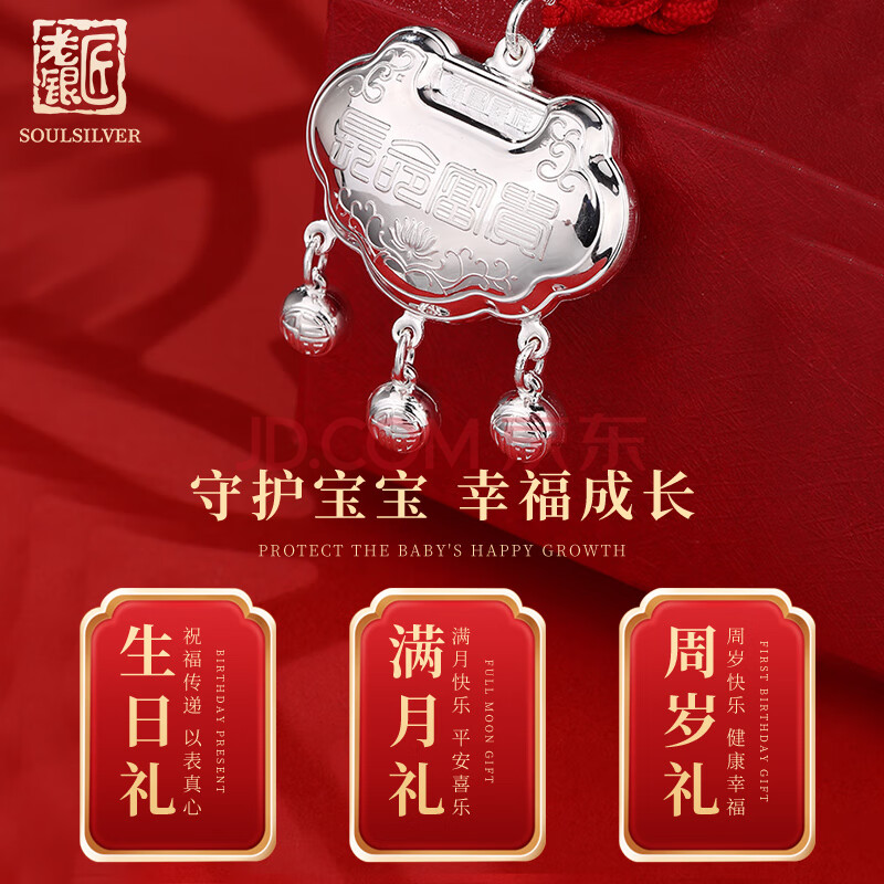 商品相册:老银匠999足银长命锁满月宝宝银饰儿童新生婴儿平安锁足银送宝宝礼物第