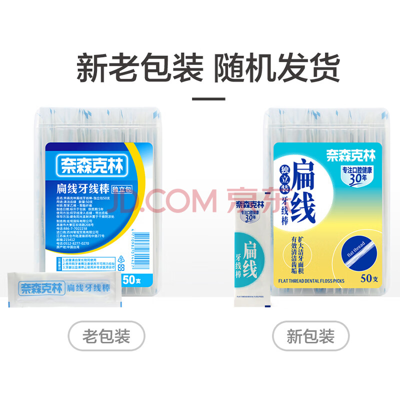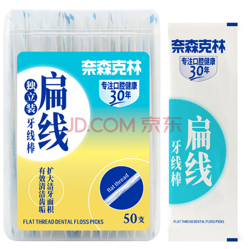 商品相册:奈森克林 扁线牙线棒 单支独立包便携清洁齿缝 50支*1盒第