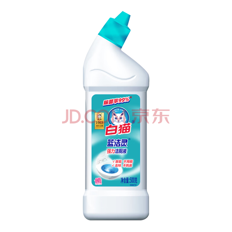 商品相册:白猫 蓝洁灵强力洁厕液(弯头)500g 强效去污 除垢去味 除菌率99%第