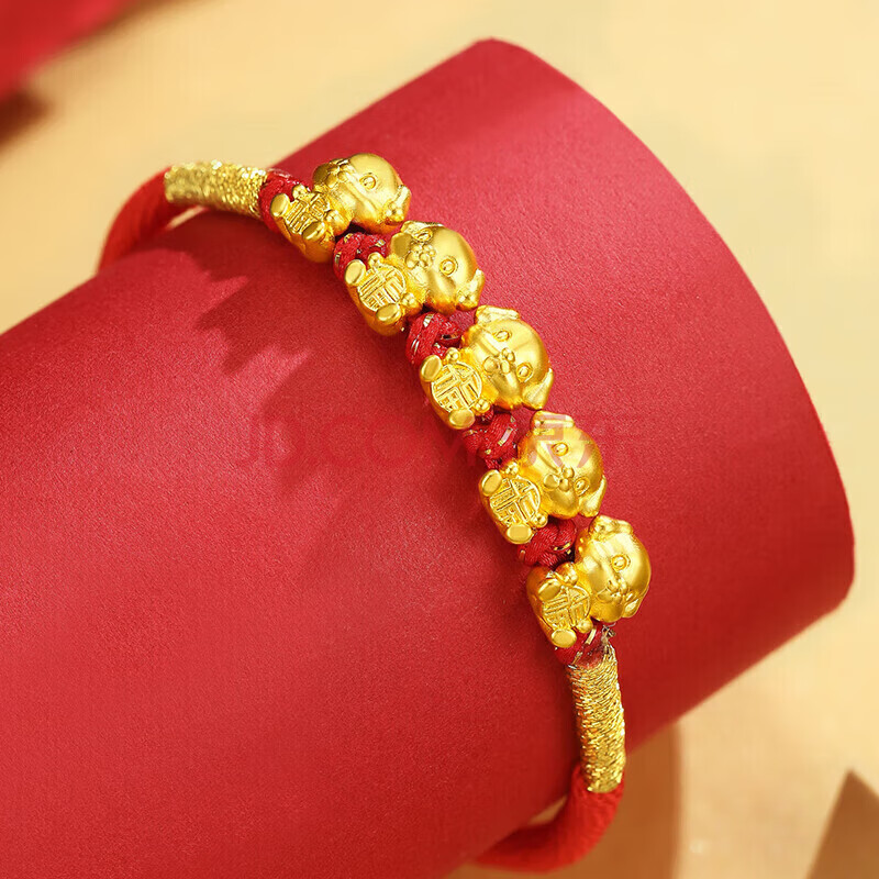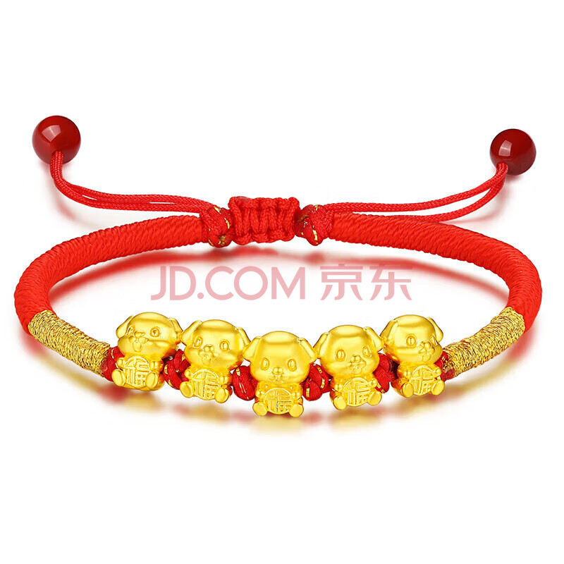 商品相册:Lossot生日礼物本命年十二生肖狗足金五福狗黄金转运珠手链5D硬金狗第