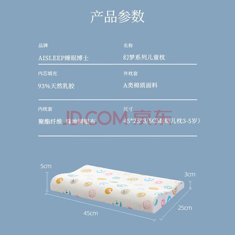 商品相册:睡眠博士(AiSleep)泰国进口幻梦乳胶儿童枕3-5岁 幼儿园午睡枕宝宝枕 天然乳胶枕头第