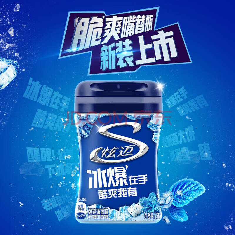 商品相册:炫迈 冰爆无糖口香糖 薄荷味40粒56g1瓶装 糖果休闲零食 清新口气提神第