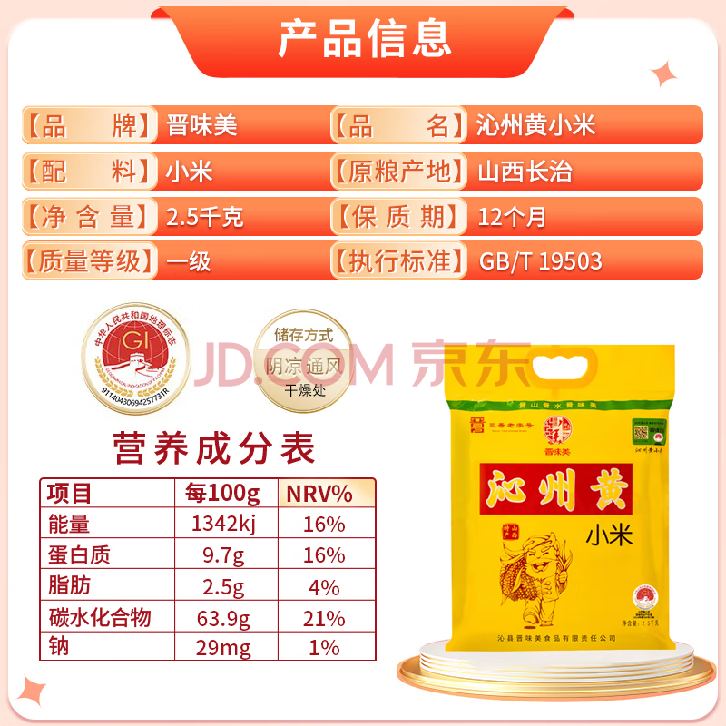 商品相册:晋味美正宗沁州黄小米5斤 山西小米 小米杂粮 黄小米 小米黄小米第