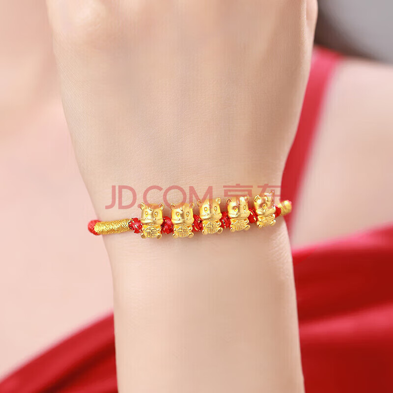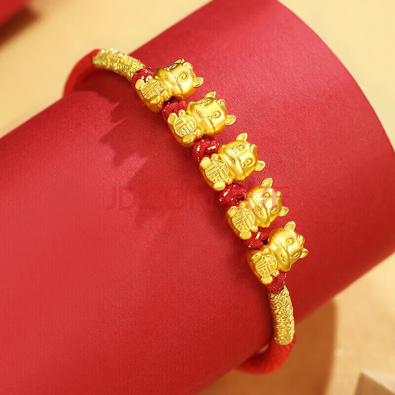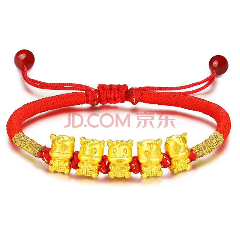 商品相册:Lossot生日礼物本命年十二生肖马足金五福马黄金转运珠手链5D硬金马第