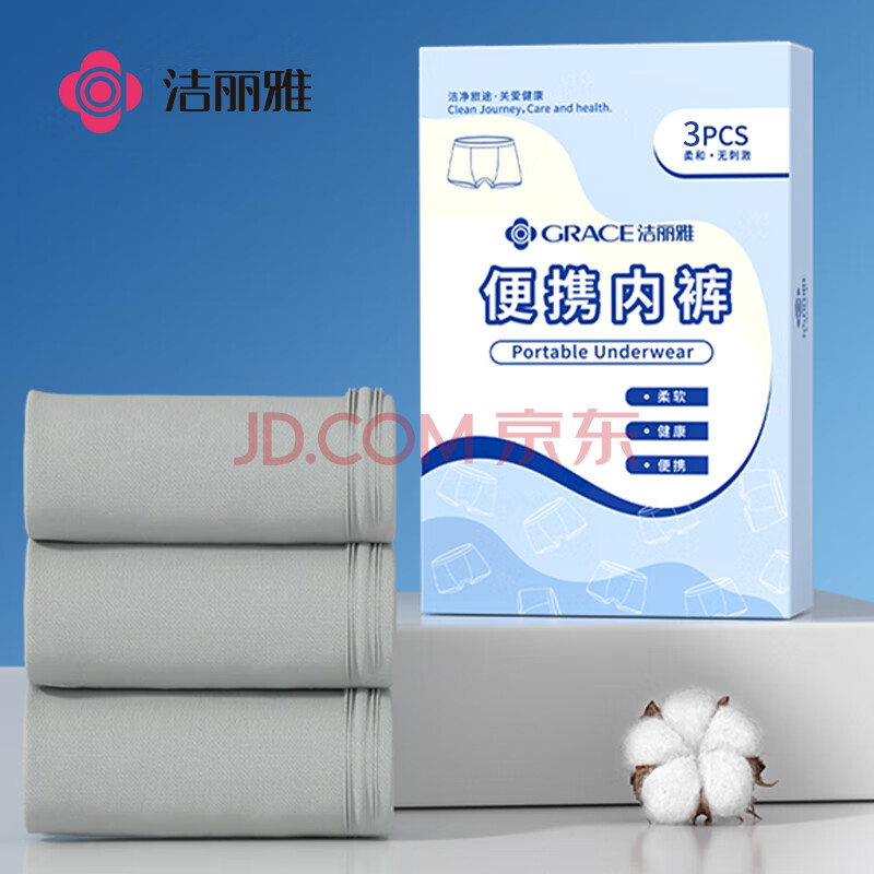 商品相册:洁丽雅一次性平角内裤男纯棉旅行便携舒适免洗短裤纯棉双档 3条装-L第