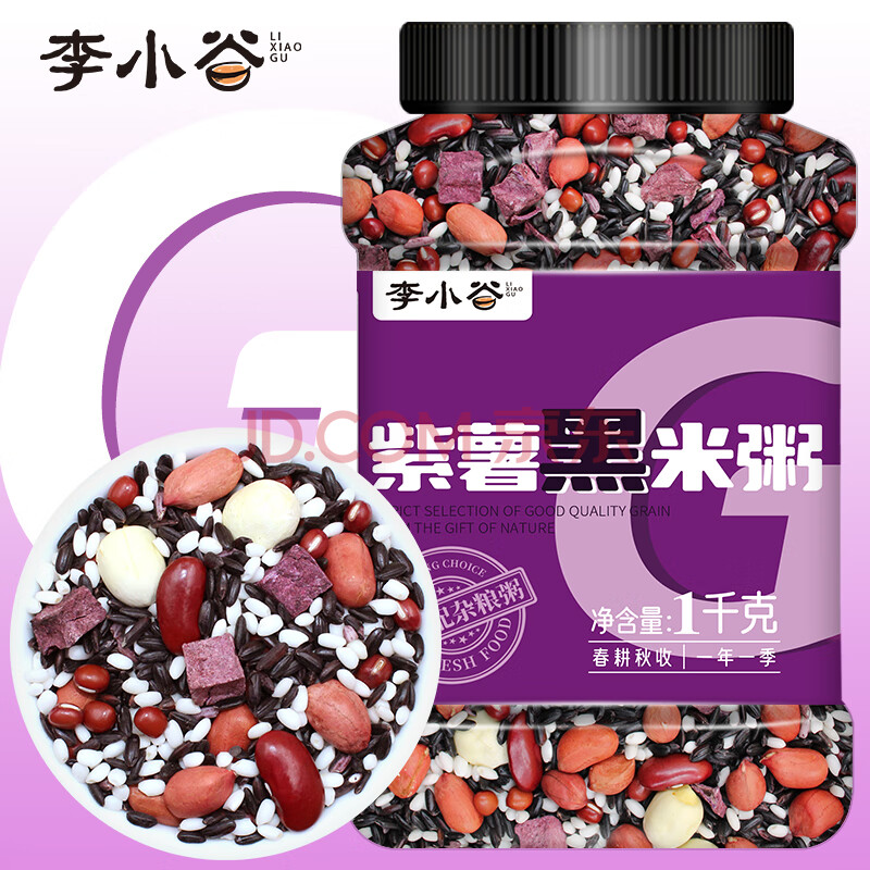 商品相册:李小谷 紫薯黑米粥2斤罐装(含黑米紫米糯米花生莲子等腊八宝粥原料)第