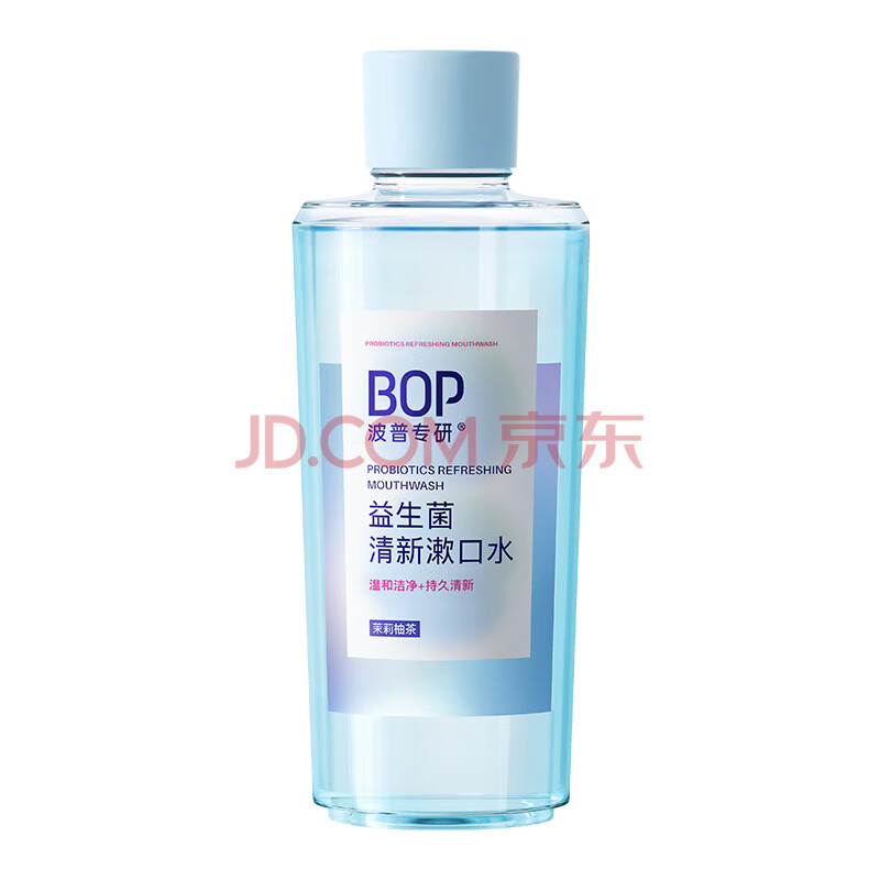 商品相册:波普专研(bop)99%减少口腔细菌益生菌漱口水口腔清洁护理持久茉莉柚茶500ml/瓶第