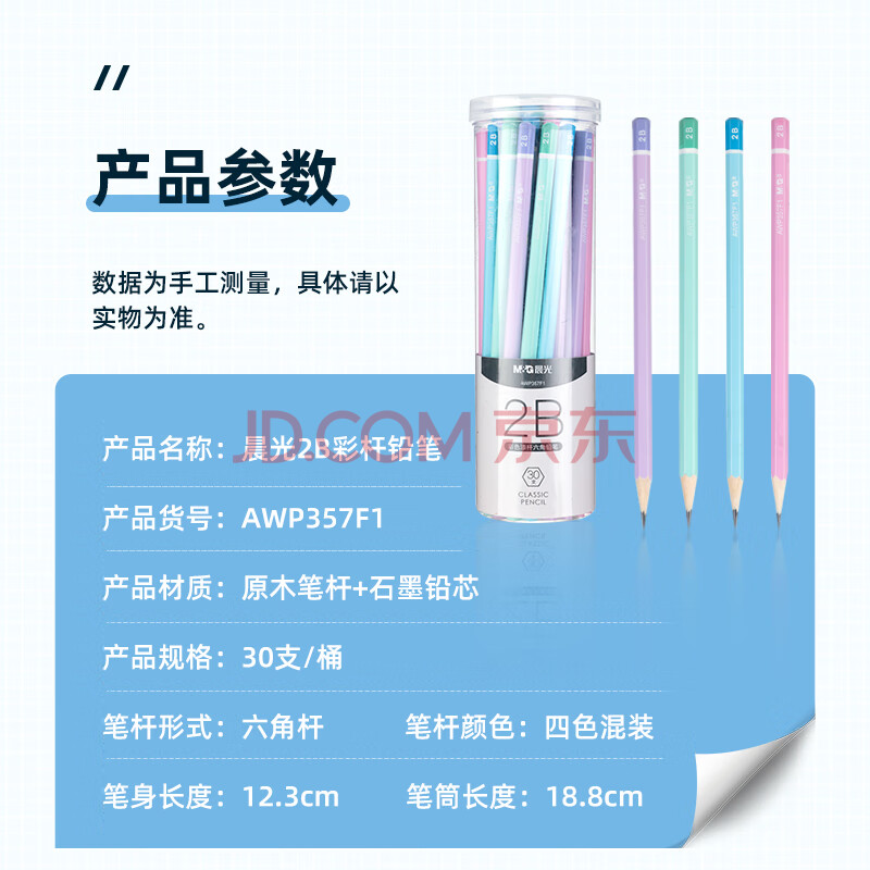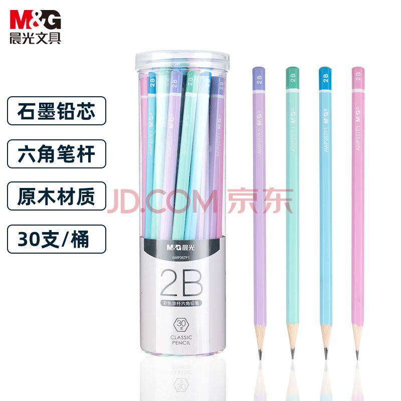 商品相册:晨光(M&G)文具2B铅笔彩杆30支 六角木杆铅笔 学生考试涂卡书写美术素描绘图木质铅笔AWP357F1第