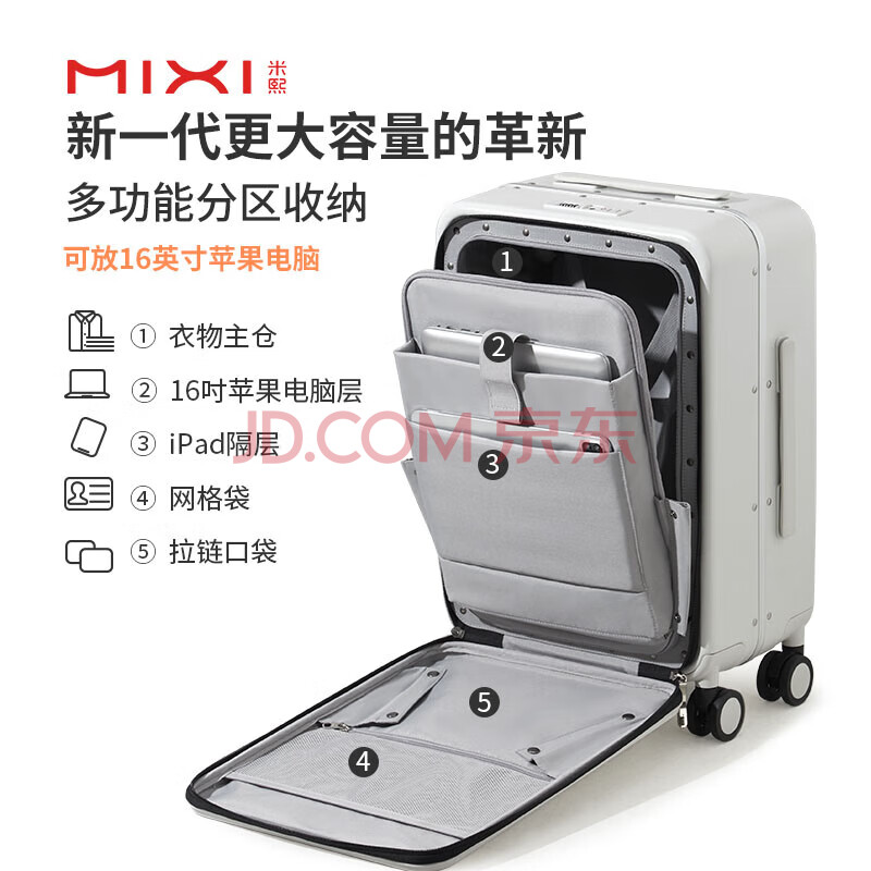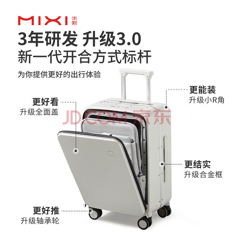 商品相册:米熙前开盖铝框箱包拉杆箱子密码箱行李箱大容量旅行箱男20英寸烟白70第