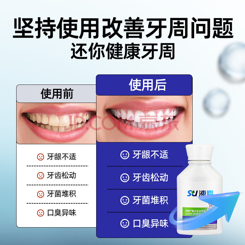 商品相册:涑爽漱口水便携氯己定含漱液清新口气消炎抑菌术后护理0.03%200ml*3第