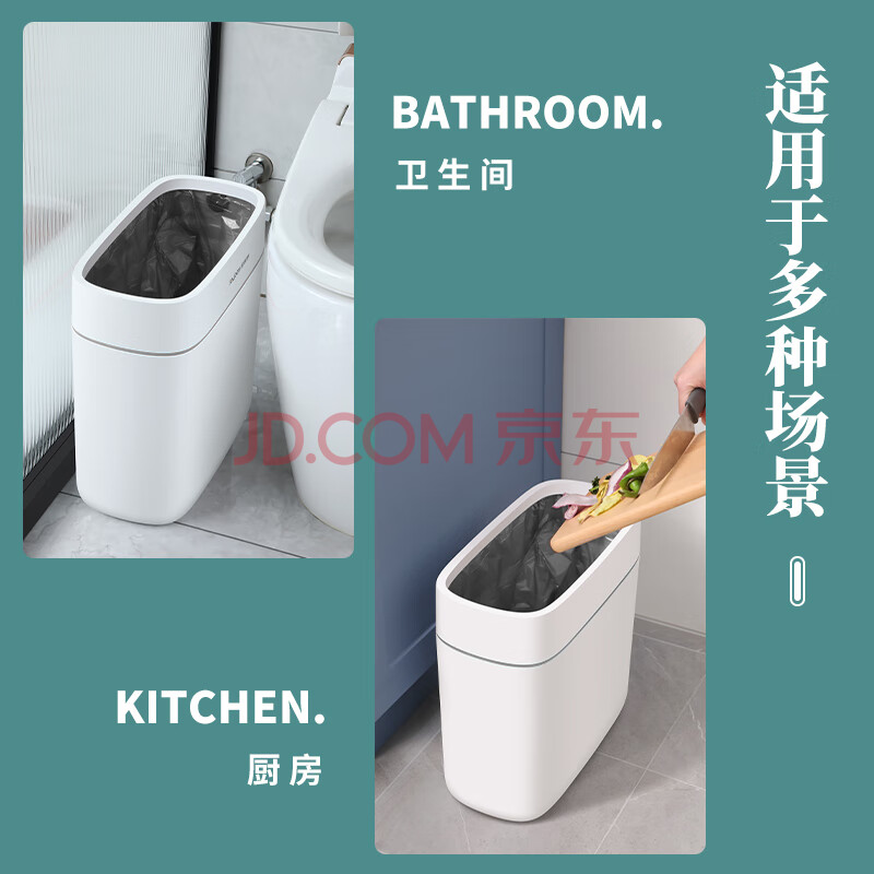 商品相册:佳帮手夹缝垃圾桶14.1L无盖大号家用客厅卫生间厕所厨房卧室网红桶第